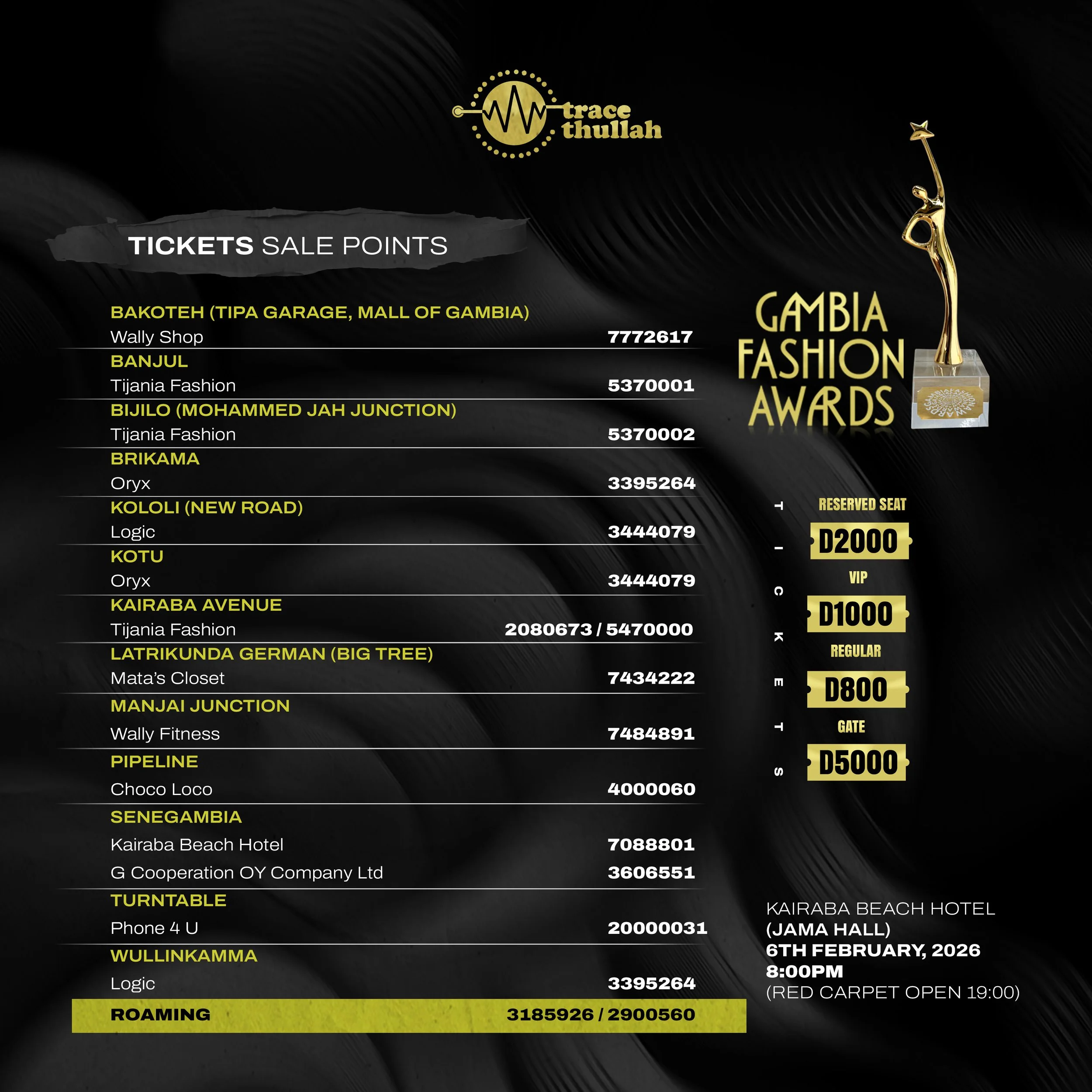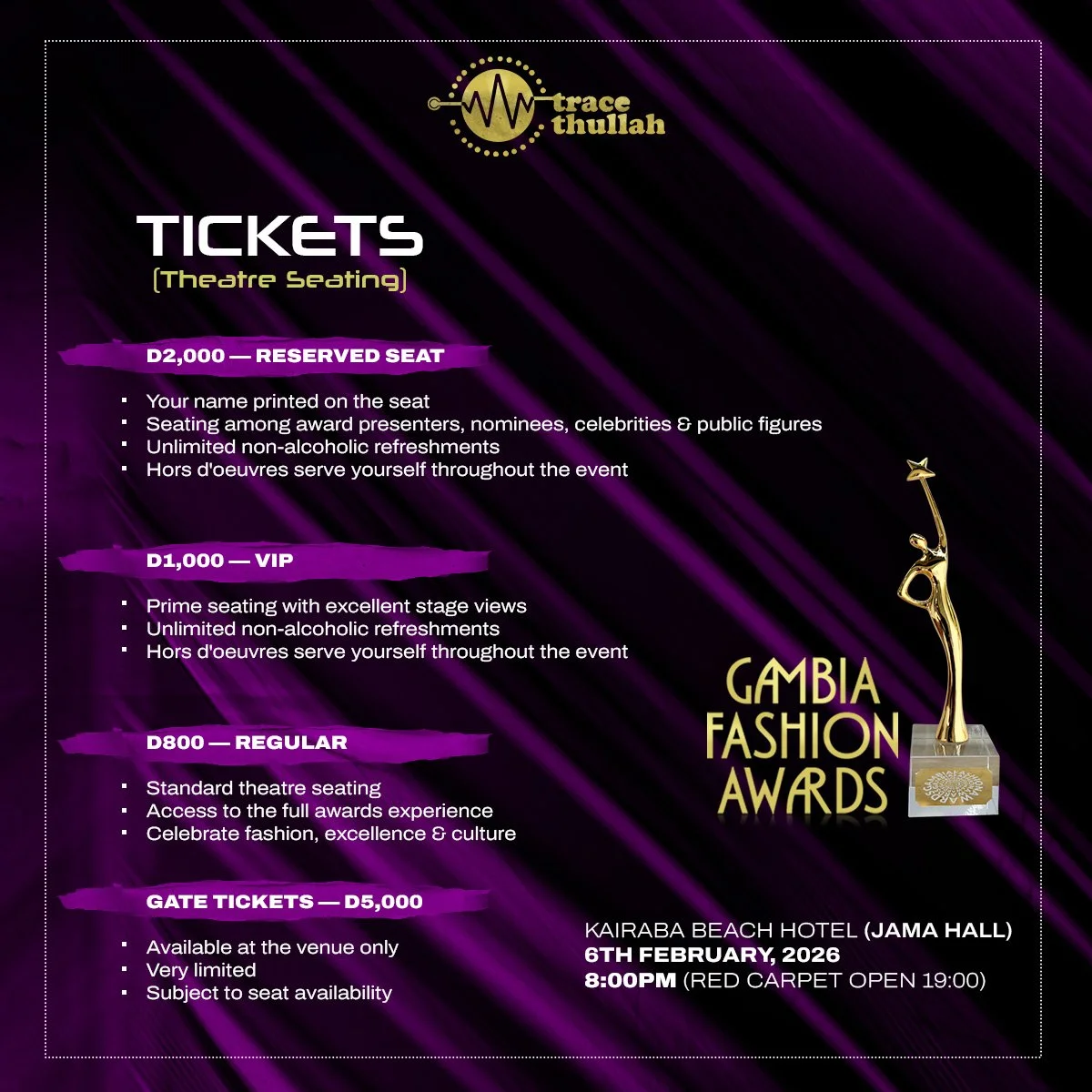 Be part of this year’s most glamorous night — secure your seat and experience the Gambia Fashion Awards in style!